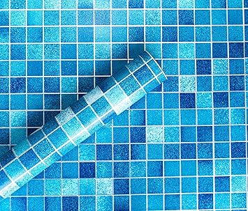 5 M Bleu Mosaique A Carreaux Dos Adhesif Plastique Fablon